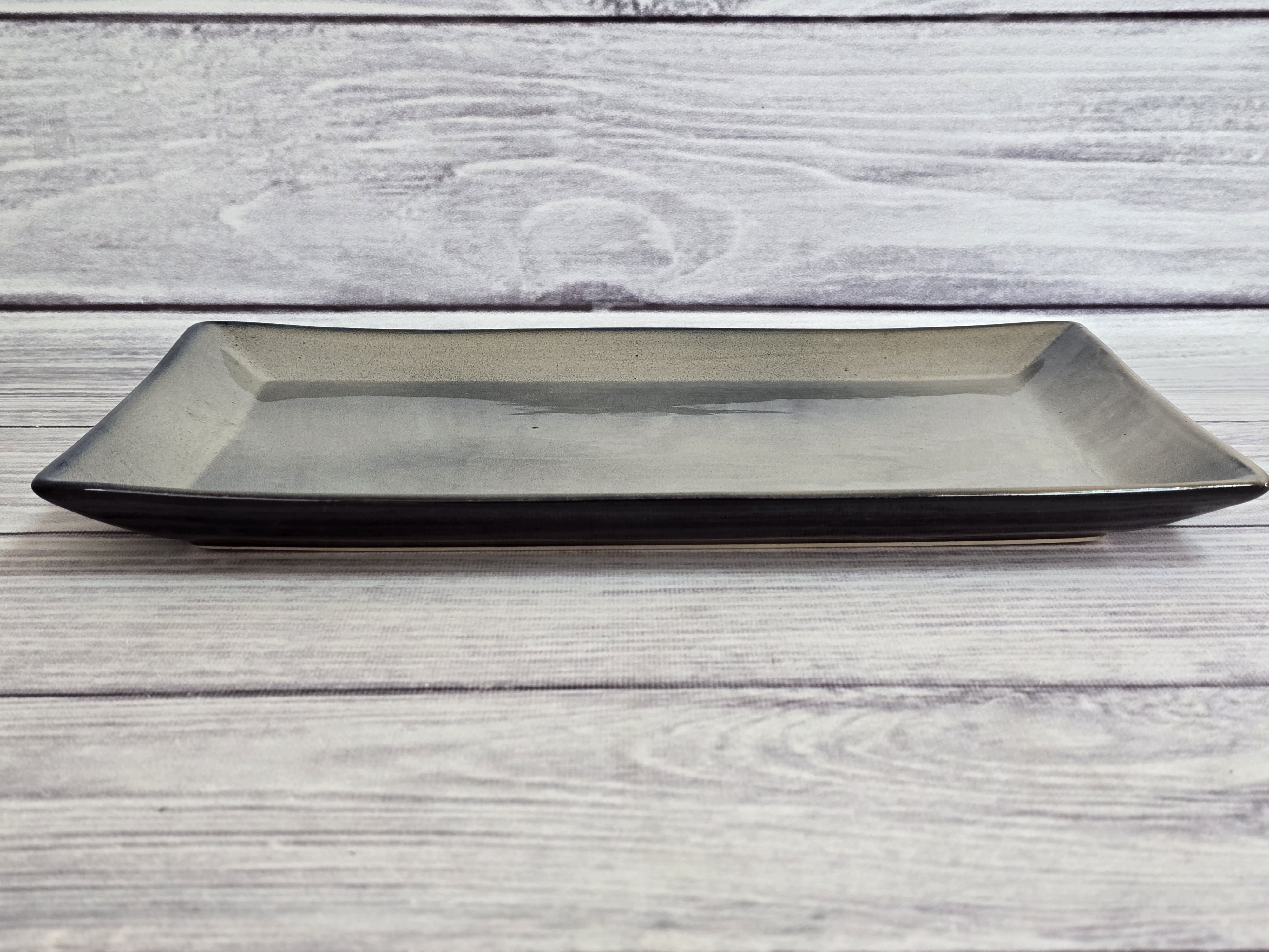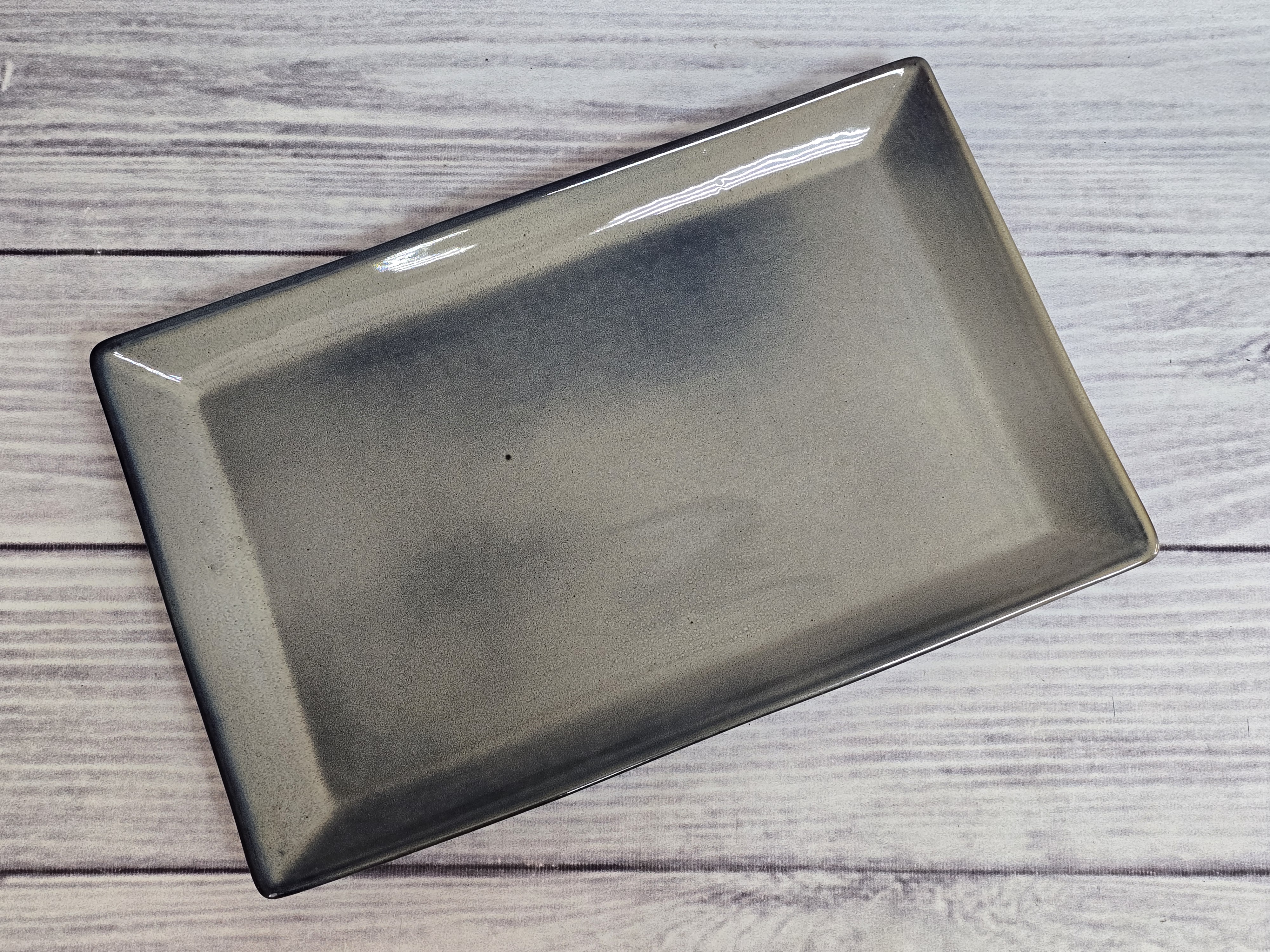Блюдо pratico ortogonale большой прямоугольной формы. Для эффектной подачи мяса, рыбы, суши и других видов европейских и японских блюд. Очень практично в использовании и хранении, занимает мало места. Глянцевая поверхность с бежево-синими хаотичными переливами.