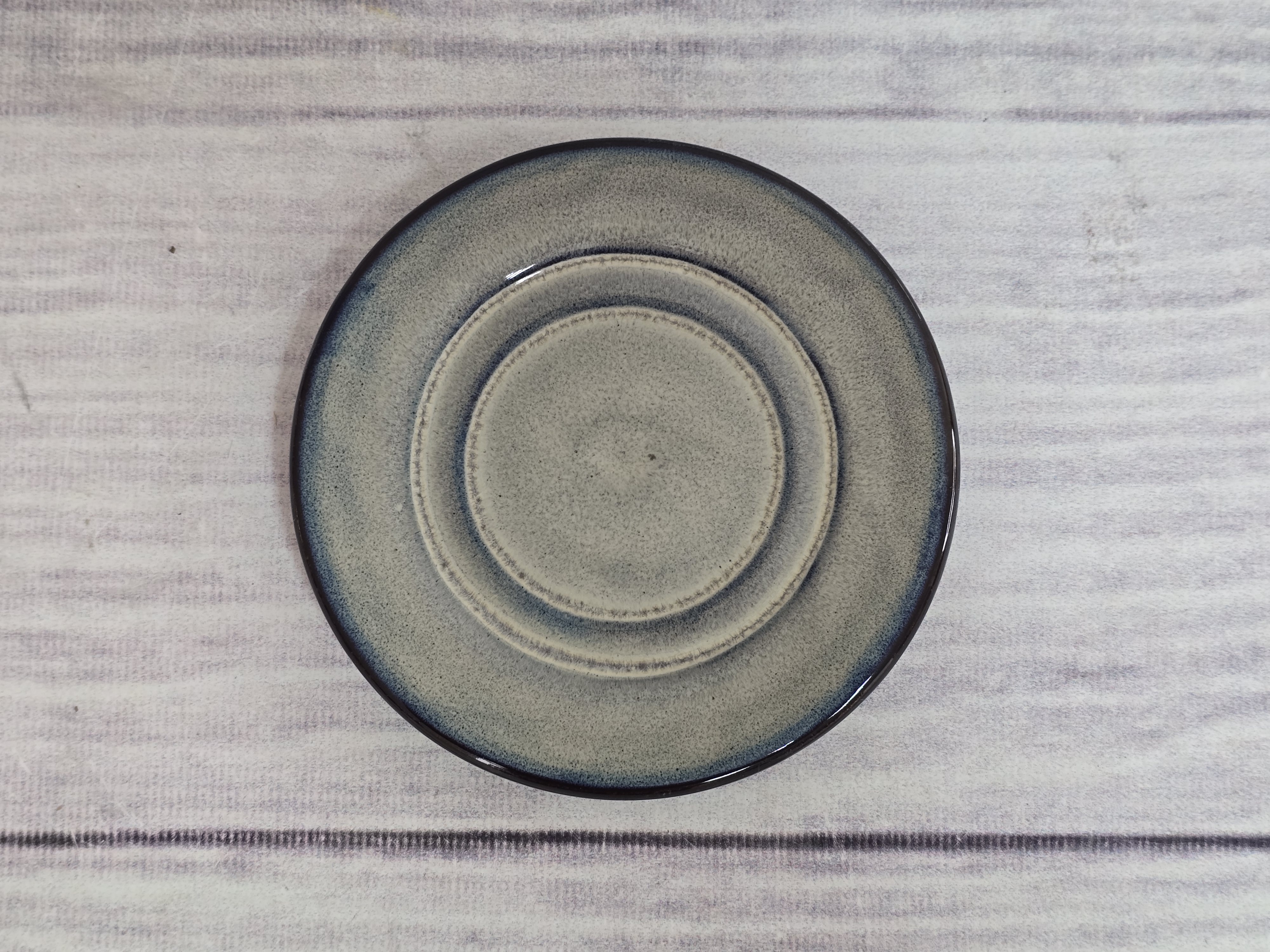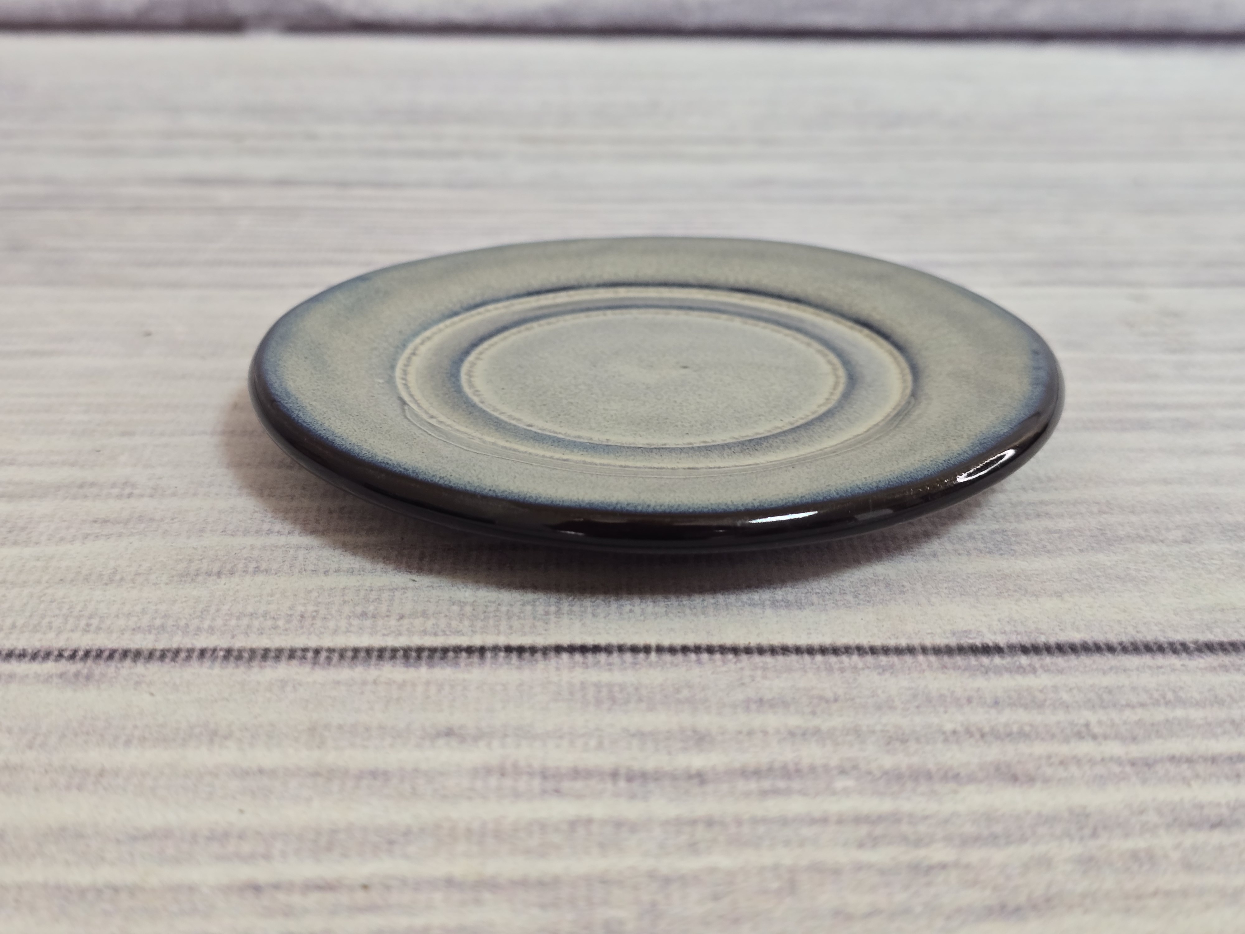 Универсальное малое блюдце для сервировки, может использоваться как подставка под чашку. Специальные бортики предотвращают соскальзывание чашки. Кроме того, эти маленькие тарелочки прекрасно украсят ваш стол. Глянцевая поверхность с бежево-синими хаотичными переливами.