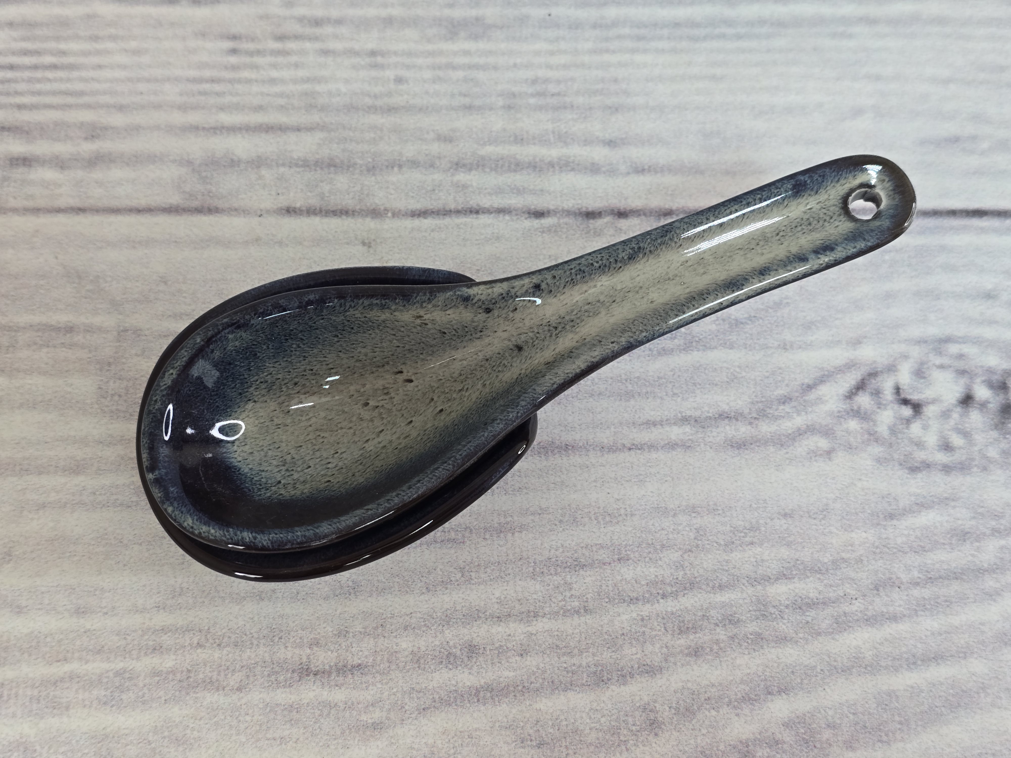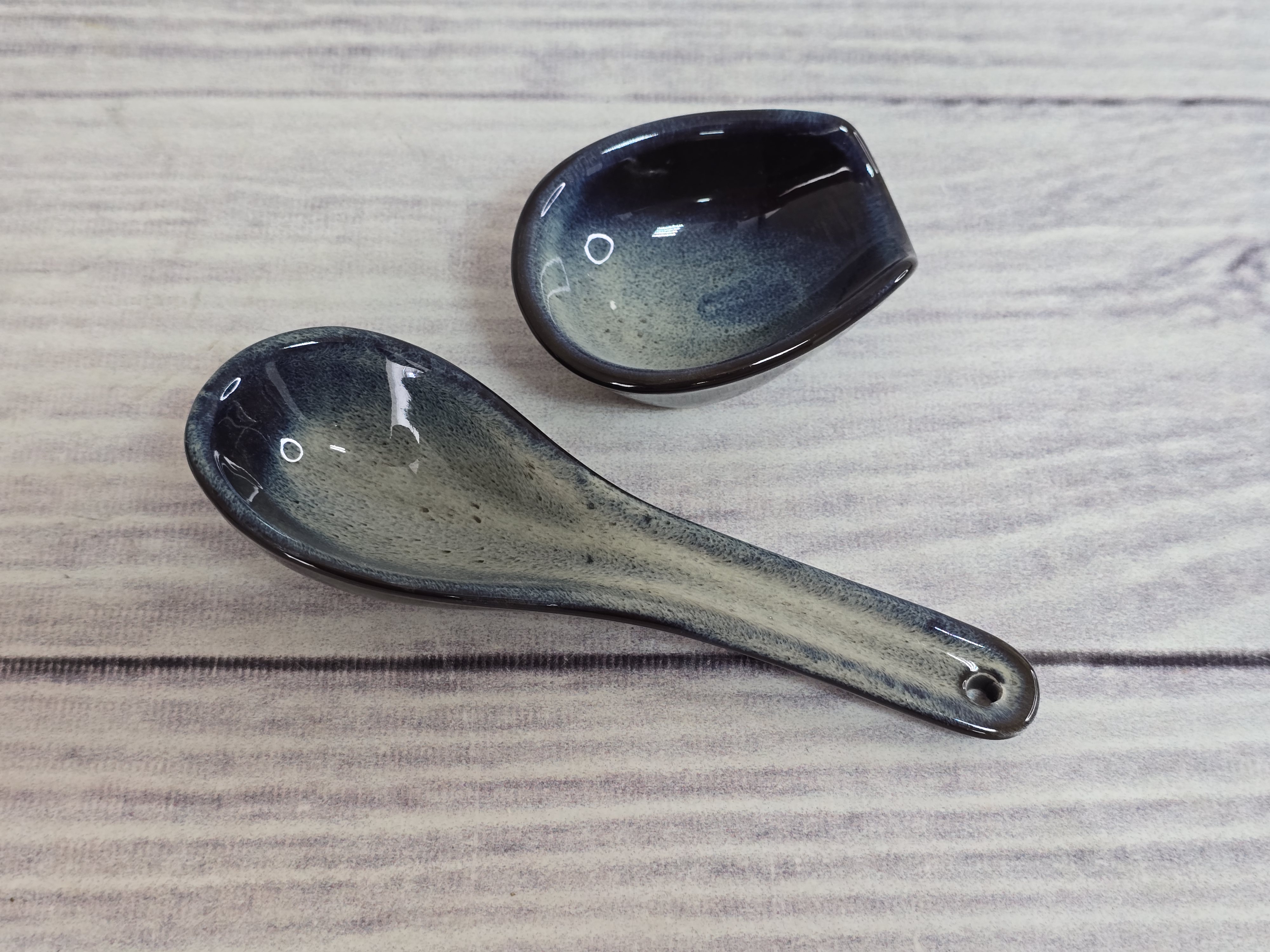 Фарфоровая ложка для мисо-супа с фарфоровой подставкой – это непременный атрибут для подачи мисо супа, имеющий многовековую историю. Набор отличается небольшими размерами и удобной ручкой. Элегантный дизайн придает фарфоровой ложке особую утонченность и изысканность, благодаря чему повседневный ужин превратится в поистине королевскую трапезу. Этот набор займет достойное место среди аксессуаров для японской кухни. Глянцевая поверхность с бежево-синими хаотичными переливами.
