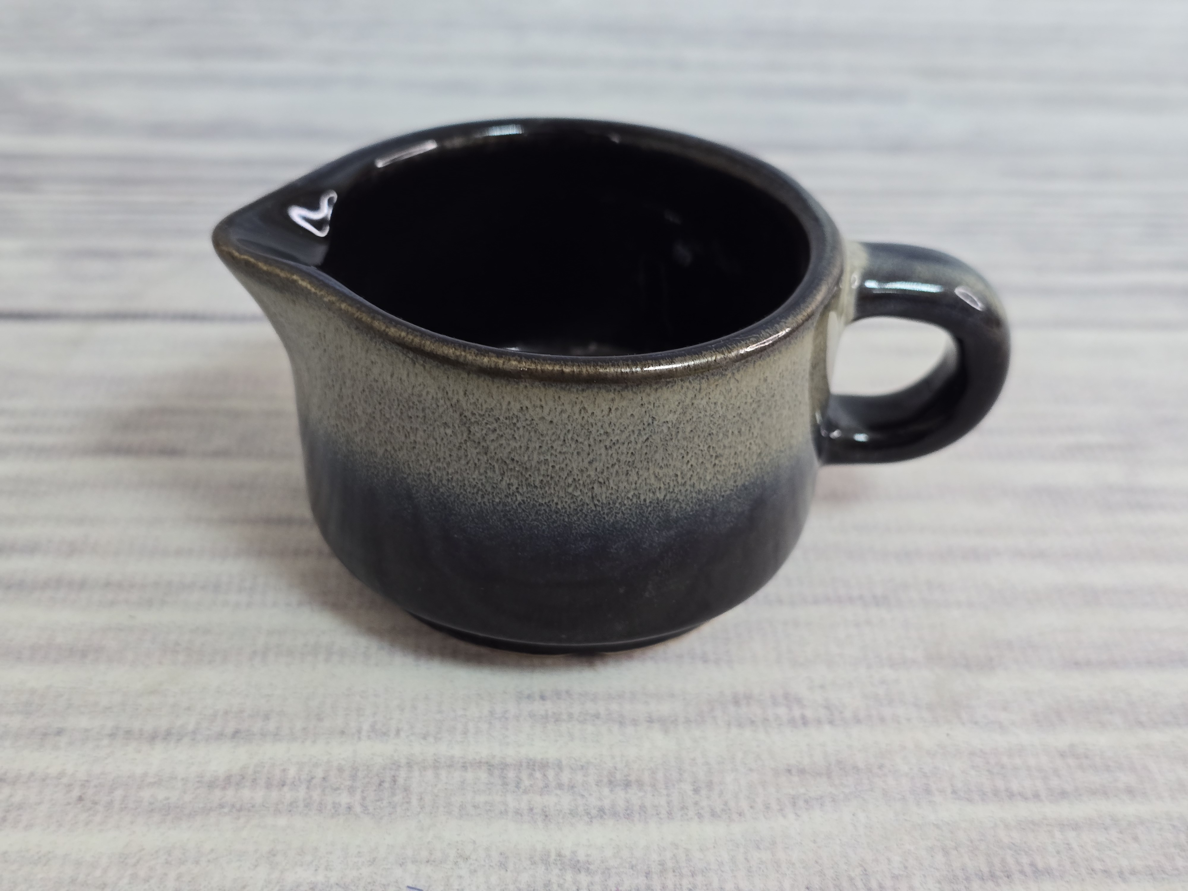 Элегантный маленький сливочник, который легко штабелируется и ставится один на один. Красивое миниатюрное изделие, которое будет приятным штрихом к полноценной сервировке. Глянцевая поверхность с бежево-синими хаотичными переливами.
