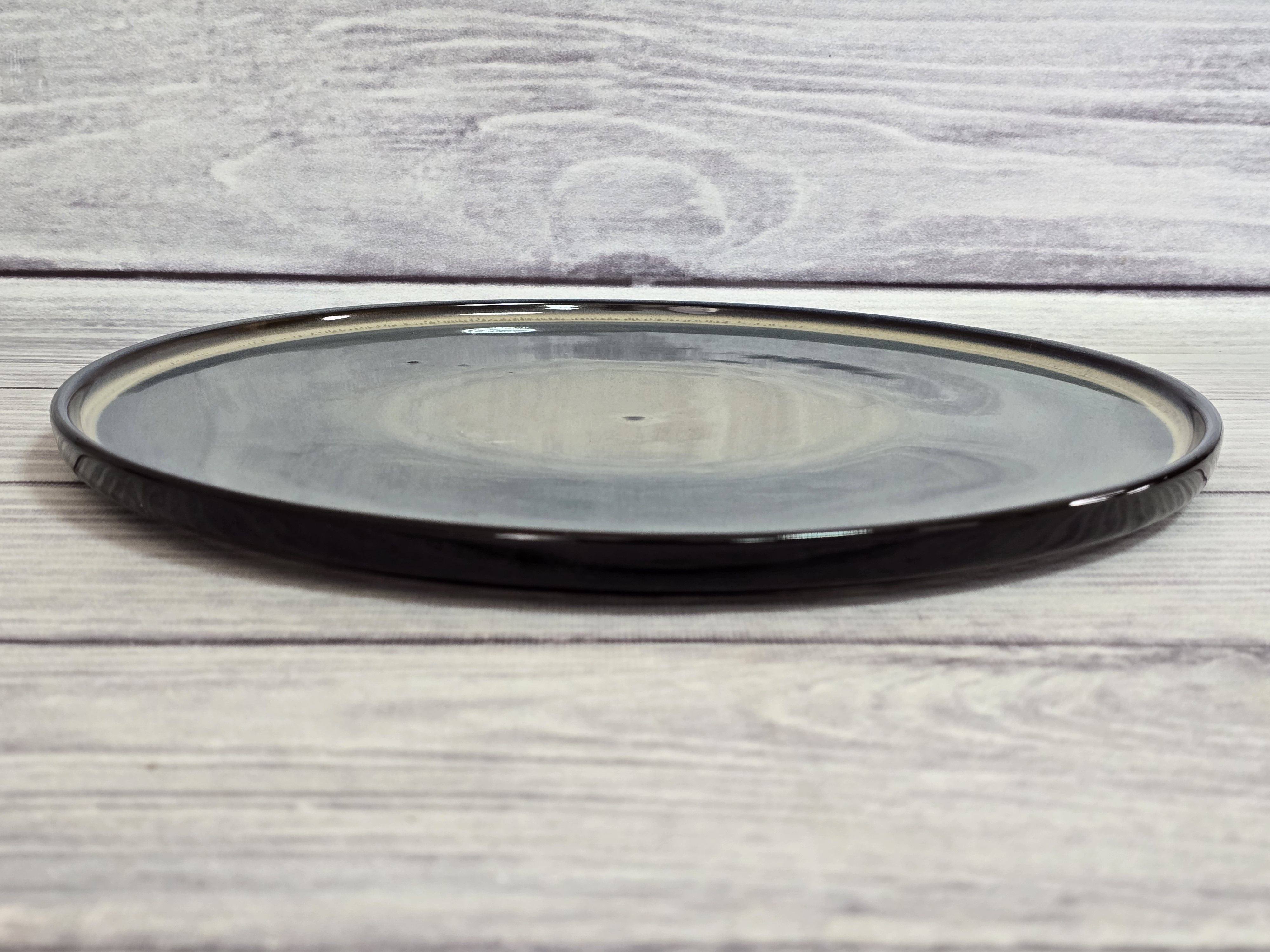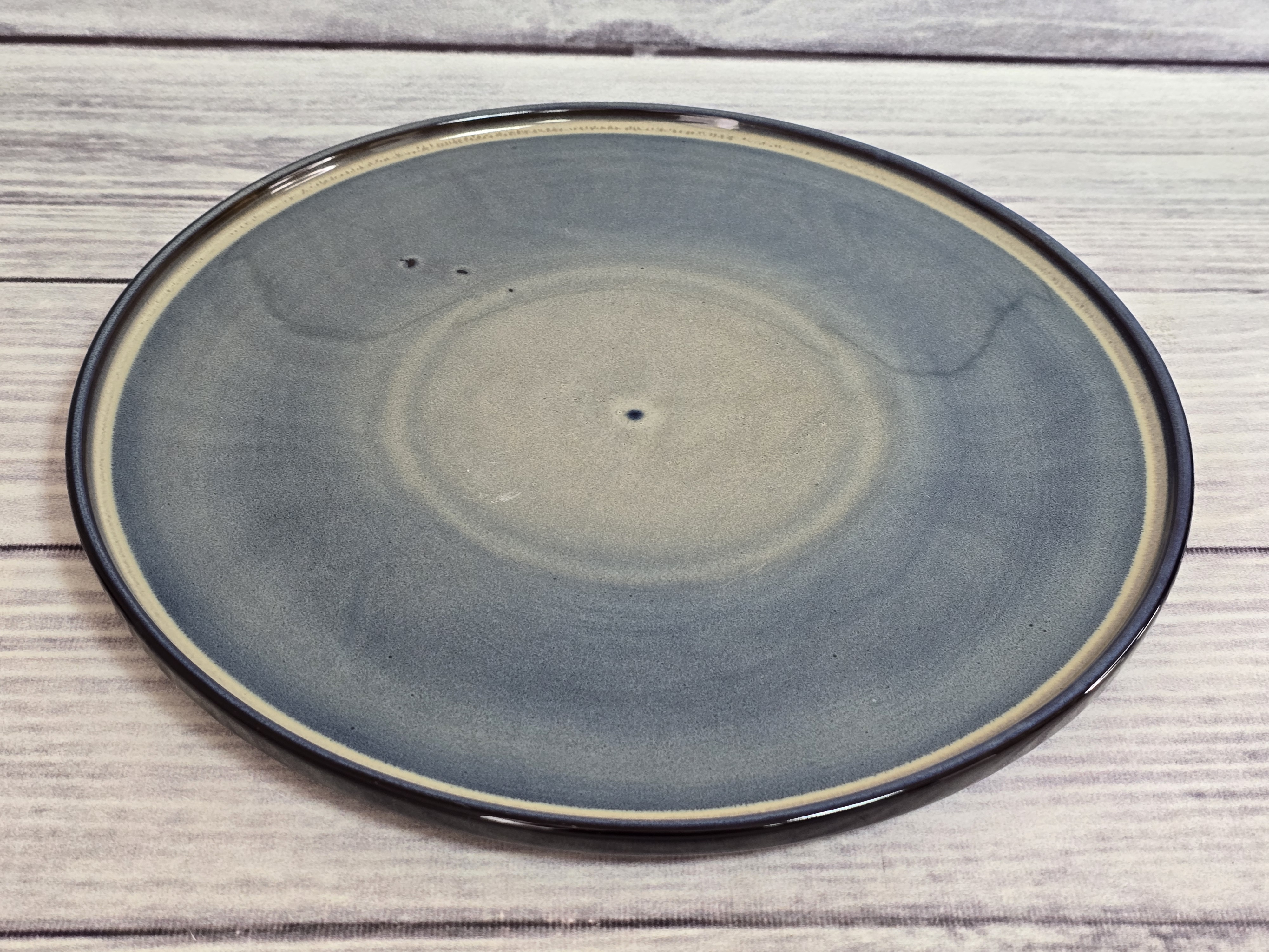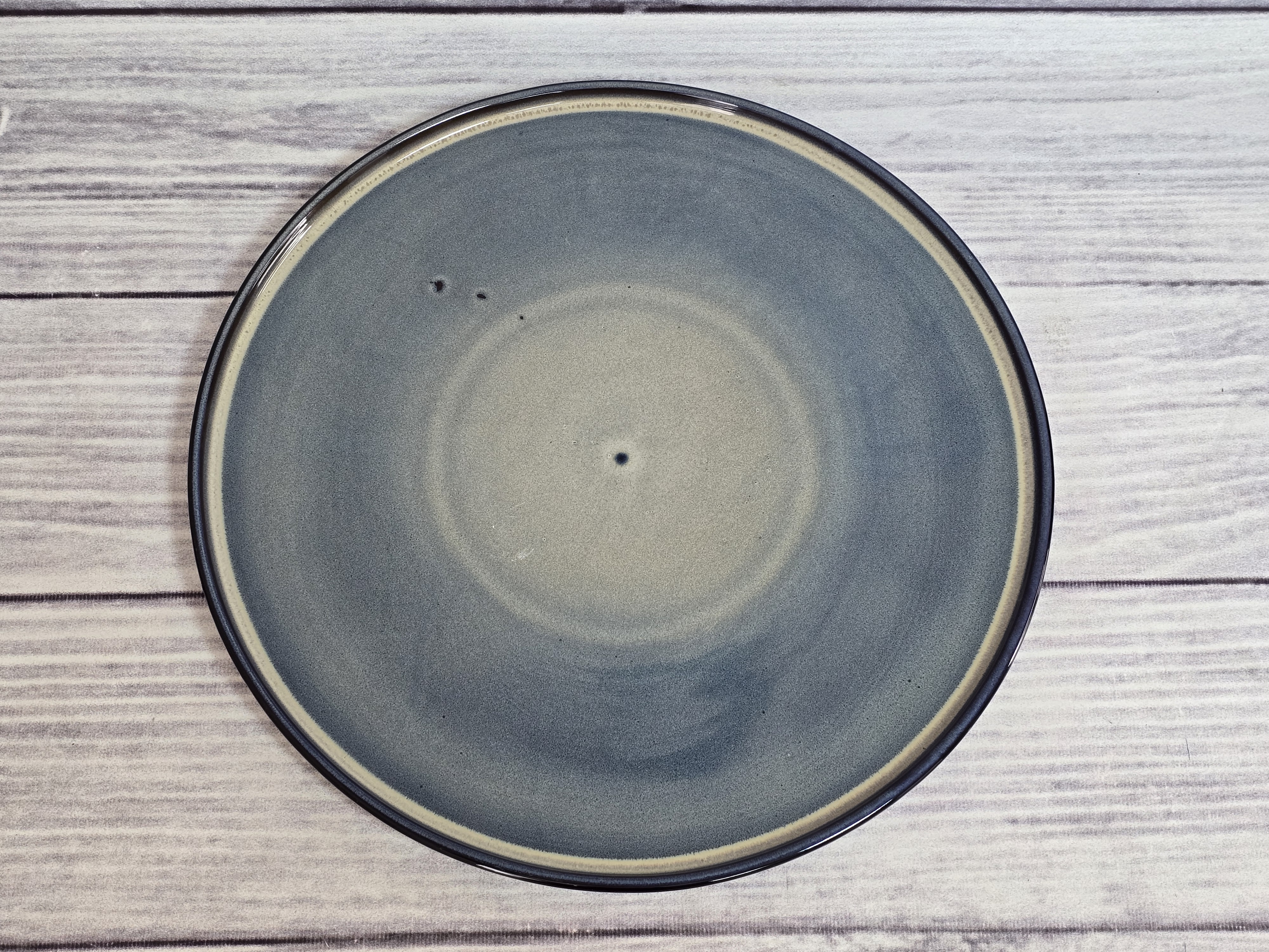 Тарелка под пиццу существенно отличается от остальной посуды, используемой для подачи горячих первых, вторых блюд и закусок. Она имеет плоскую форму со слегка загнутыми краями или невысокими бортиками. Плоское дно повторяет форму пиццы, а бортики предотвращают ее соскальзывание на стол в процессе нарезки. Пригодна для использования в посудомоечной машине и микроволновой печи. Глянцевая поверхность с бежево-синими хаотичными переливами.