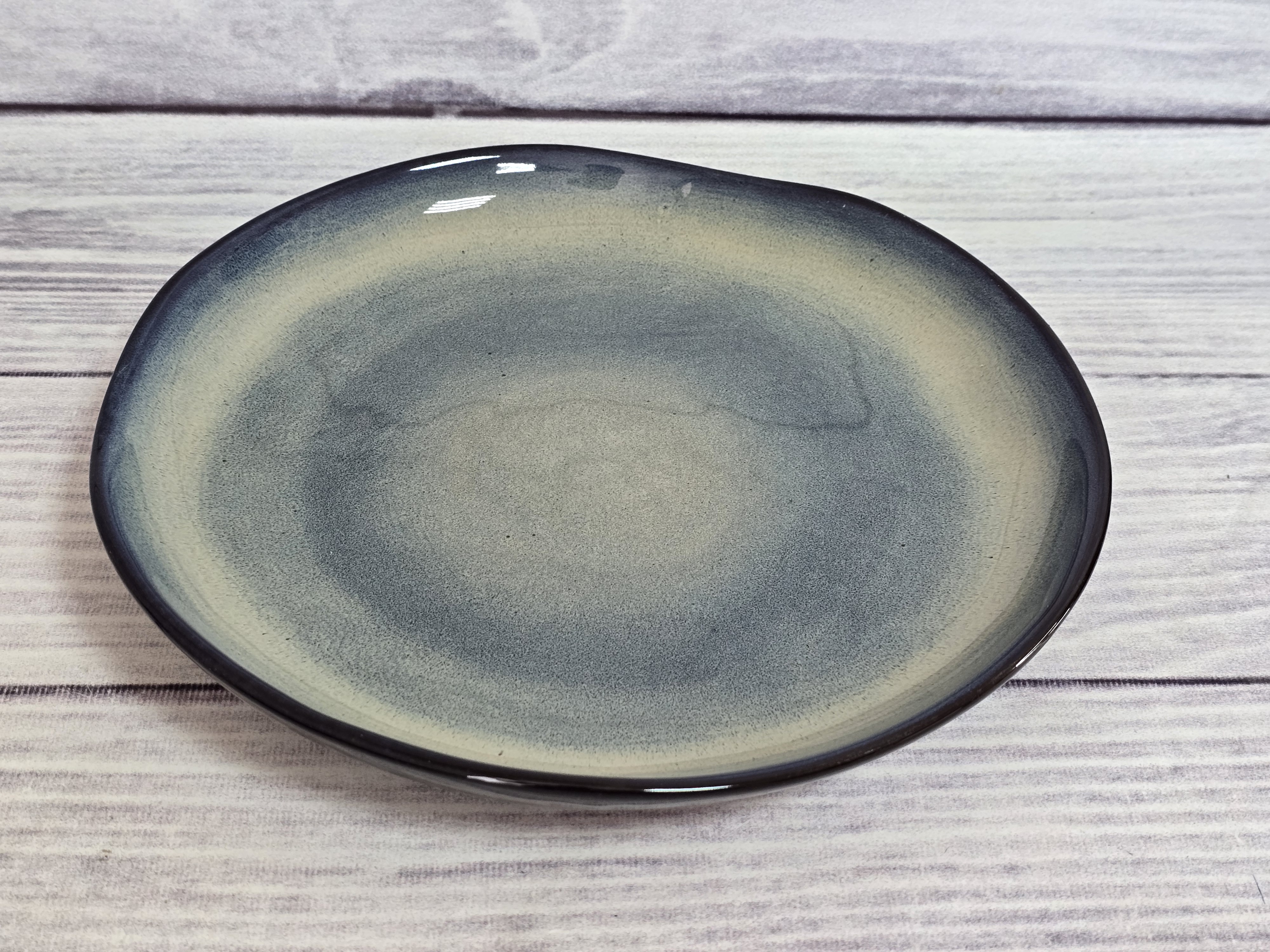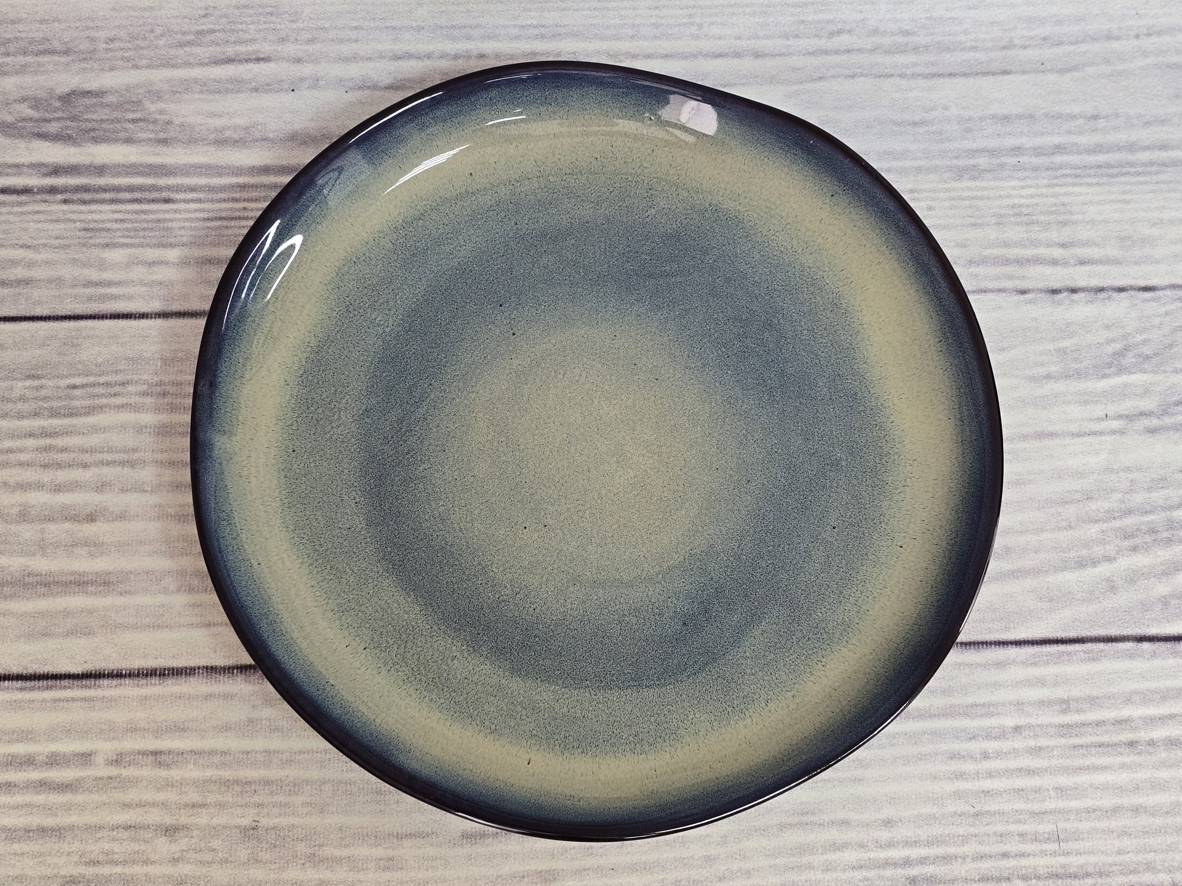 Компактная тарелка сочетает в себе изысканный дизайн с максимальной функциональностью. Специально неровные края, воодушевит вас на создание новых блюд. Производится из современного и экологически чистого материала - фарфора. Подходит для использования в микроволновой печи и посудомоечной машине. Глянцевая поверхность с бежево-синими хаотичными переливами.
