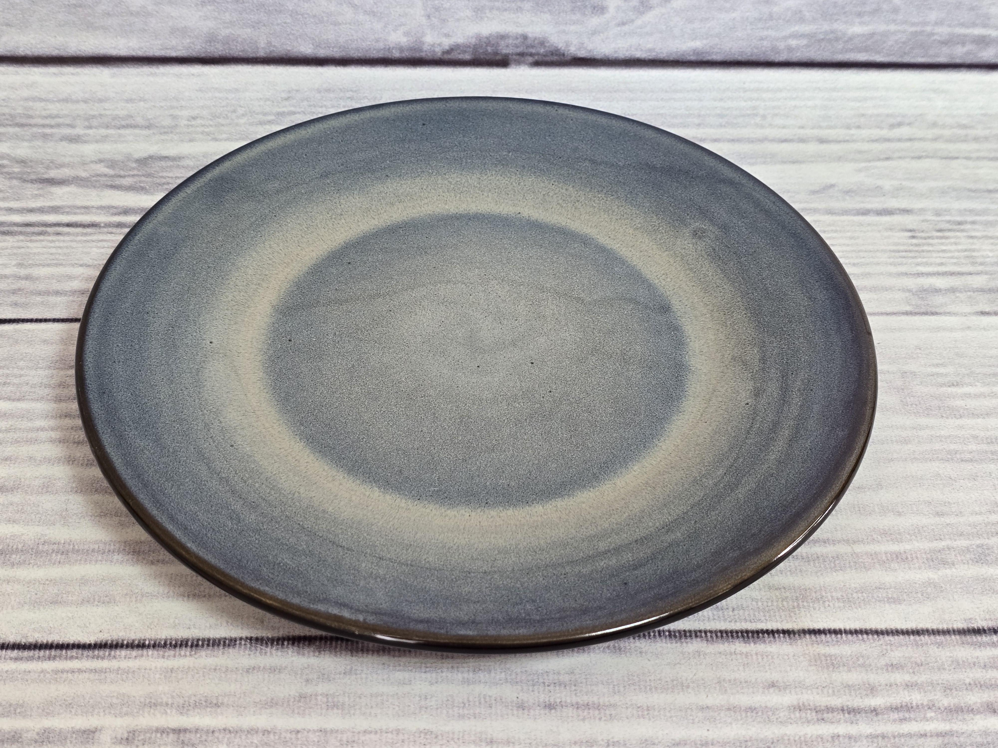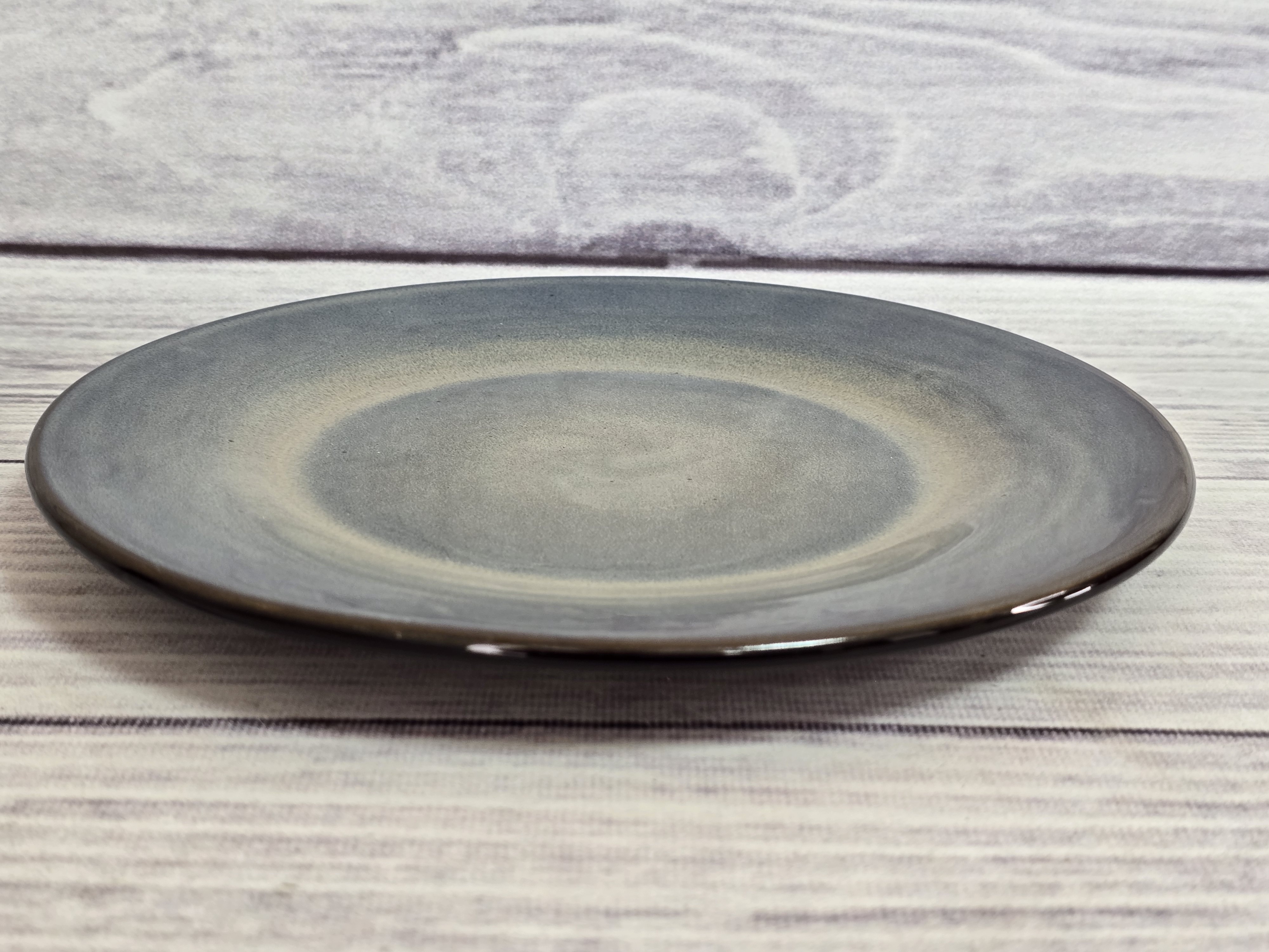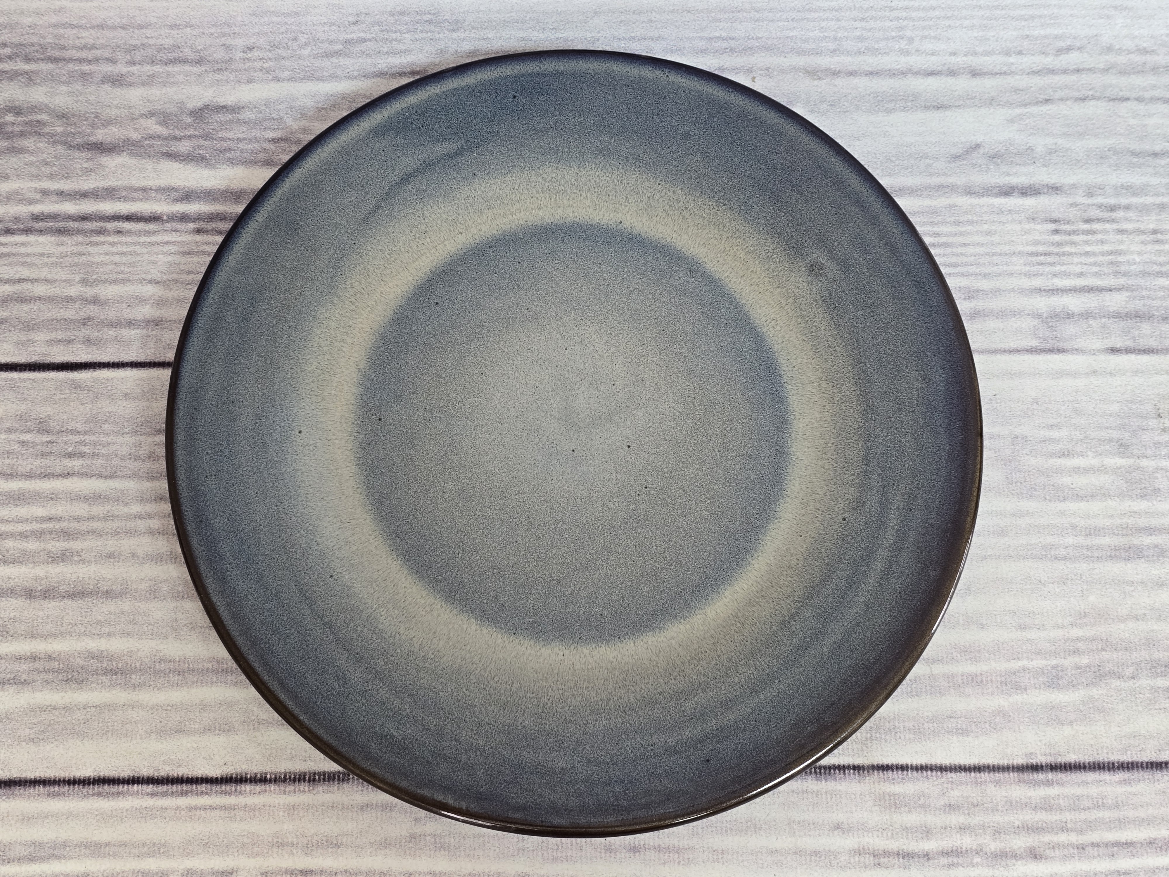 Удобная и практичная тарелка, имеющая утолщенный край. Яркий дизайн. Пригодна для использования в посудомоечной машине и микроволновой печи. Глянцевая поверхность с бежево-синими хаотичными переливами.