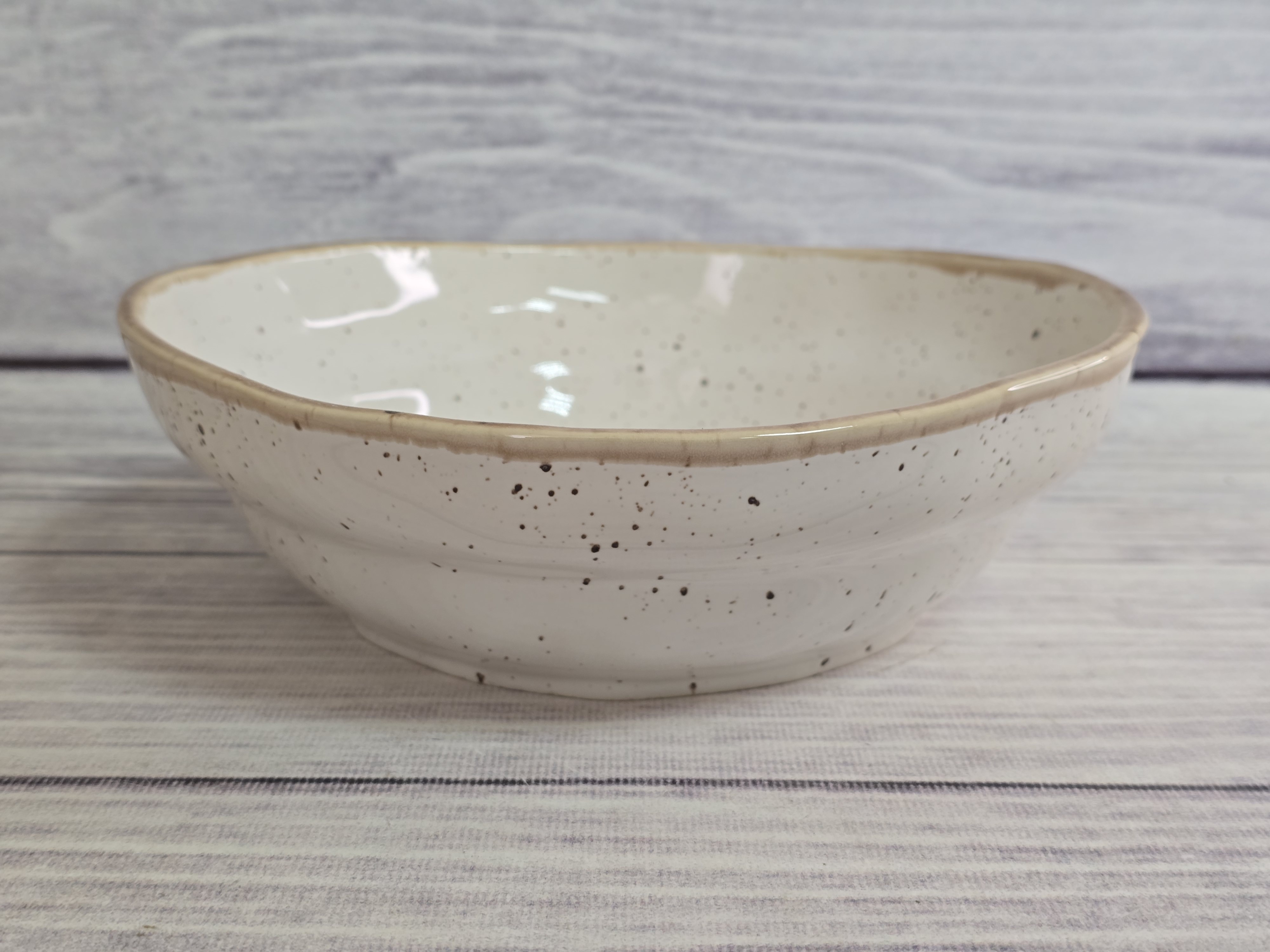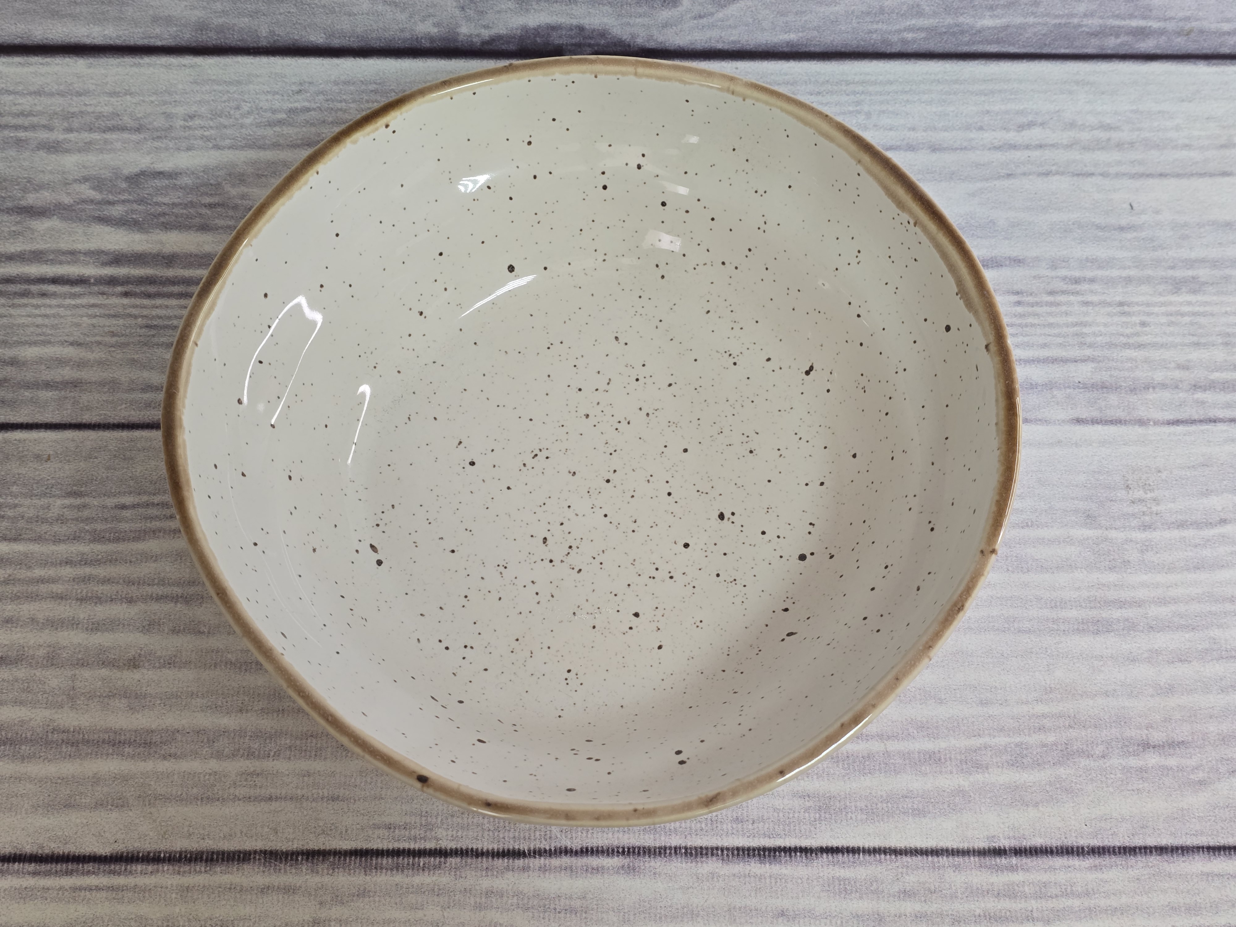 Натуральная, естественная, мятая тарелка для ресторанов, которые любят оригинальность. Идеально подойдет для подачи салатов и первых блюд. Пригодна для использования в посудомоечной машине и микроволновой печи.