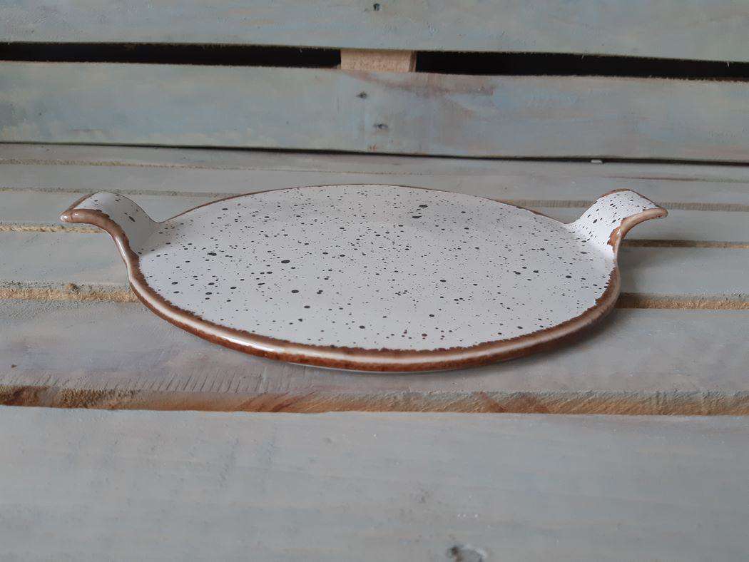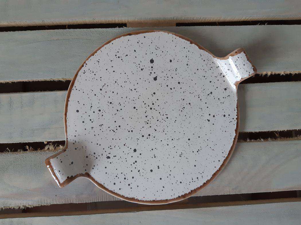 Фарфоровое блюдо для подачи сыра или другой нарезки. Стильное, удобное. Диаметр блюда без ручек - 25 см. Это довольно большая поверхность, на которой можно красиво разместить продукты. Пригодна для использования в посудомоечной машине и микроволновой печи. Глянцевая поверхность