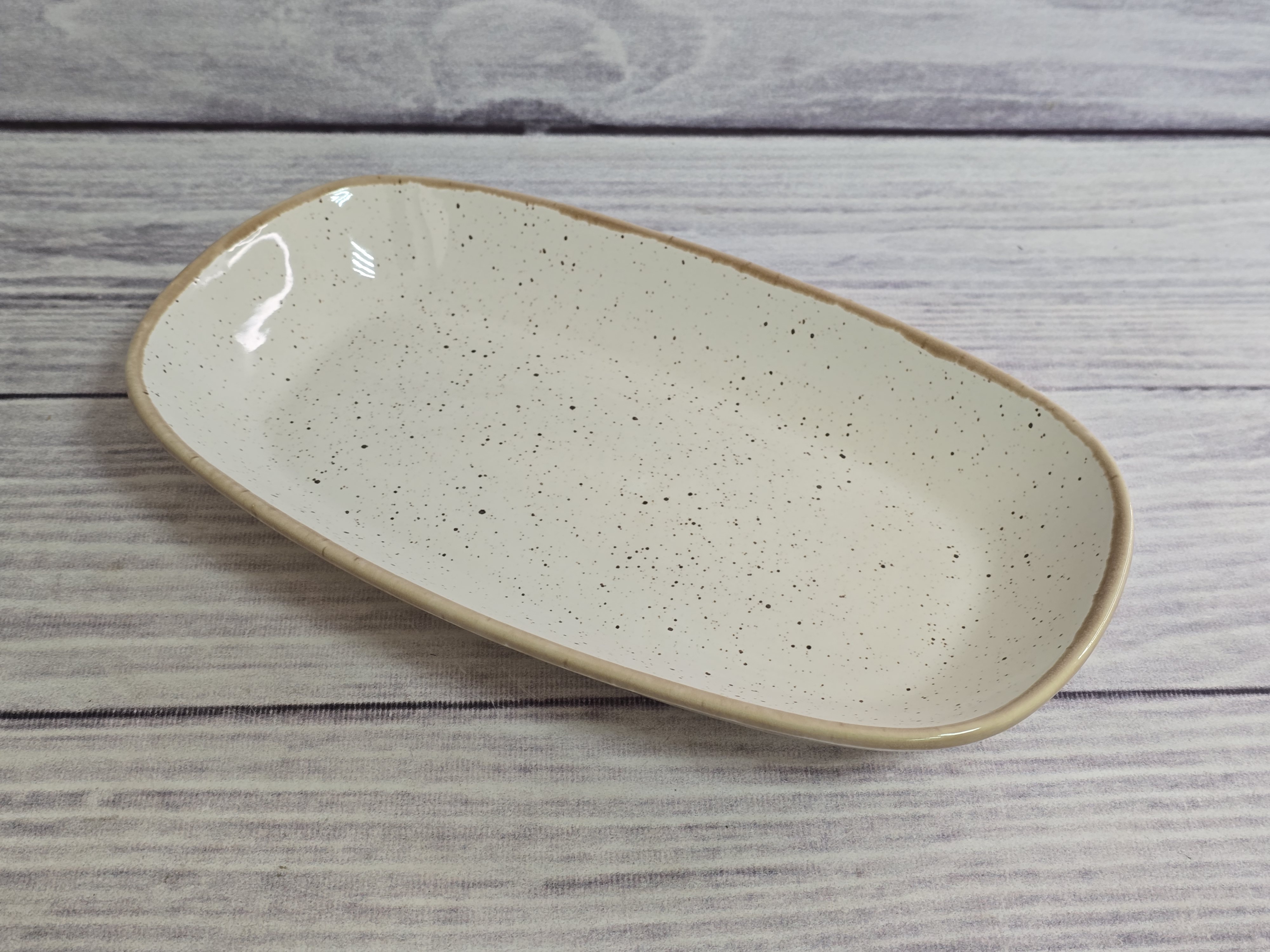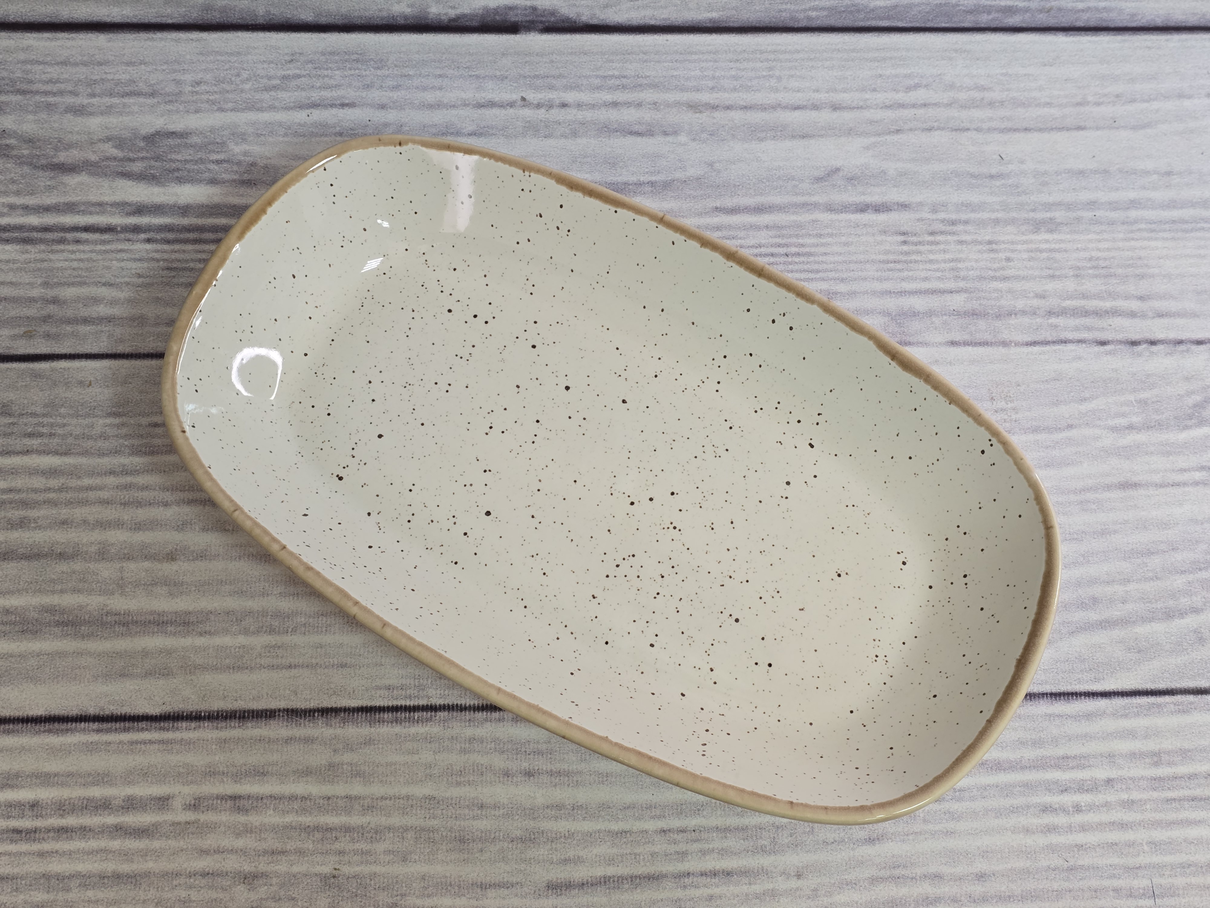 Большое блюдо овально-прямоугольной формы с высокими бортиками. Оригинальная подача в таком блюде гарантирована. Глянцевая поверхность.