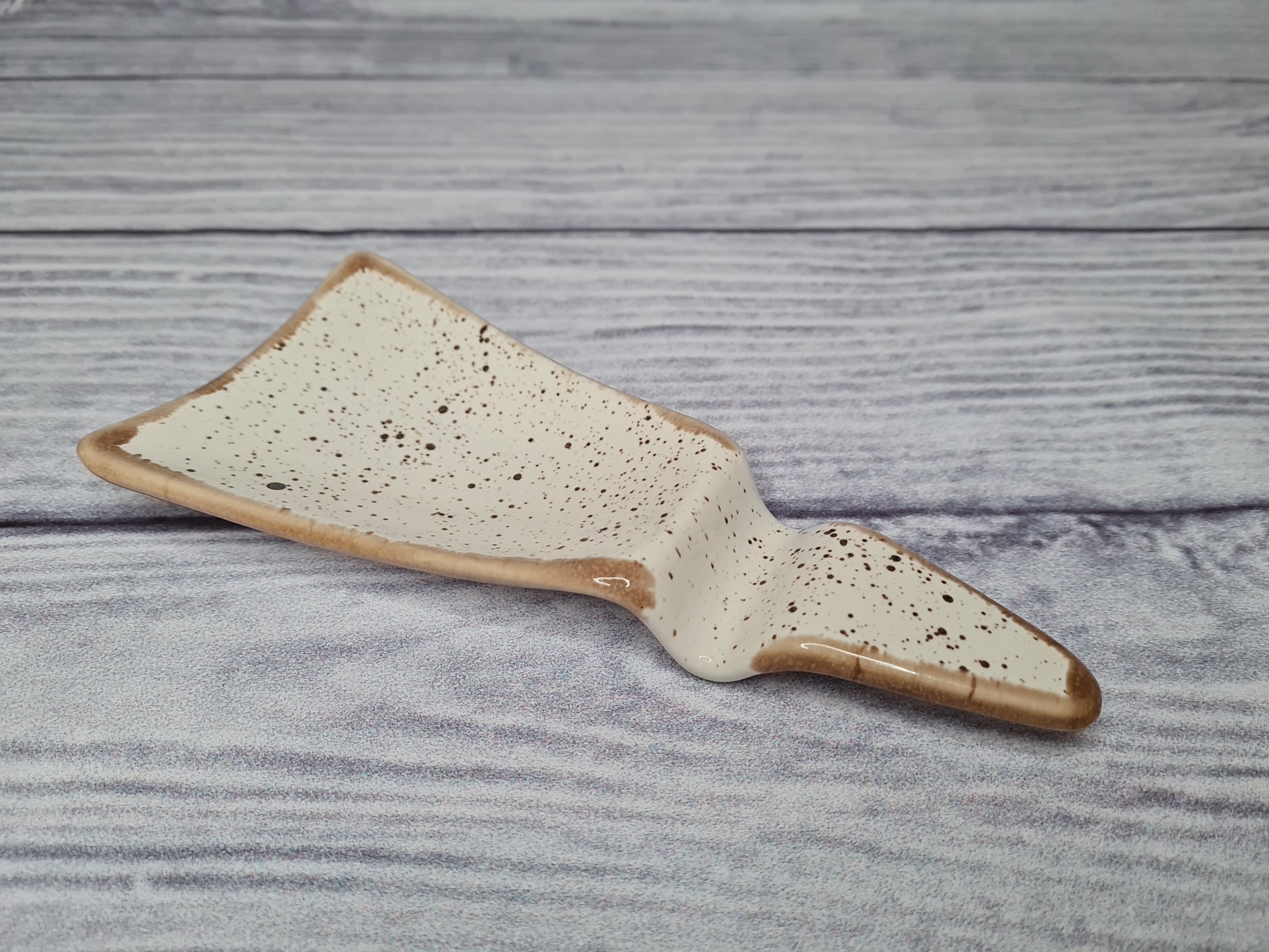 Такой аксессуар, как подставка под ложку, является настоящим спасением для каждой хозяйки - это весьма удобный и необходимый предмет для кухни. Кроме того, такой аксессуар, помимо своего прямого назначения, может служить весьма оригинальным и стильным предметом для украшения кухонного интерьера. Подставка под ложку выполнена из высококачественного фарфора. Глянцевая поверхность.