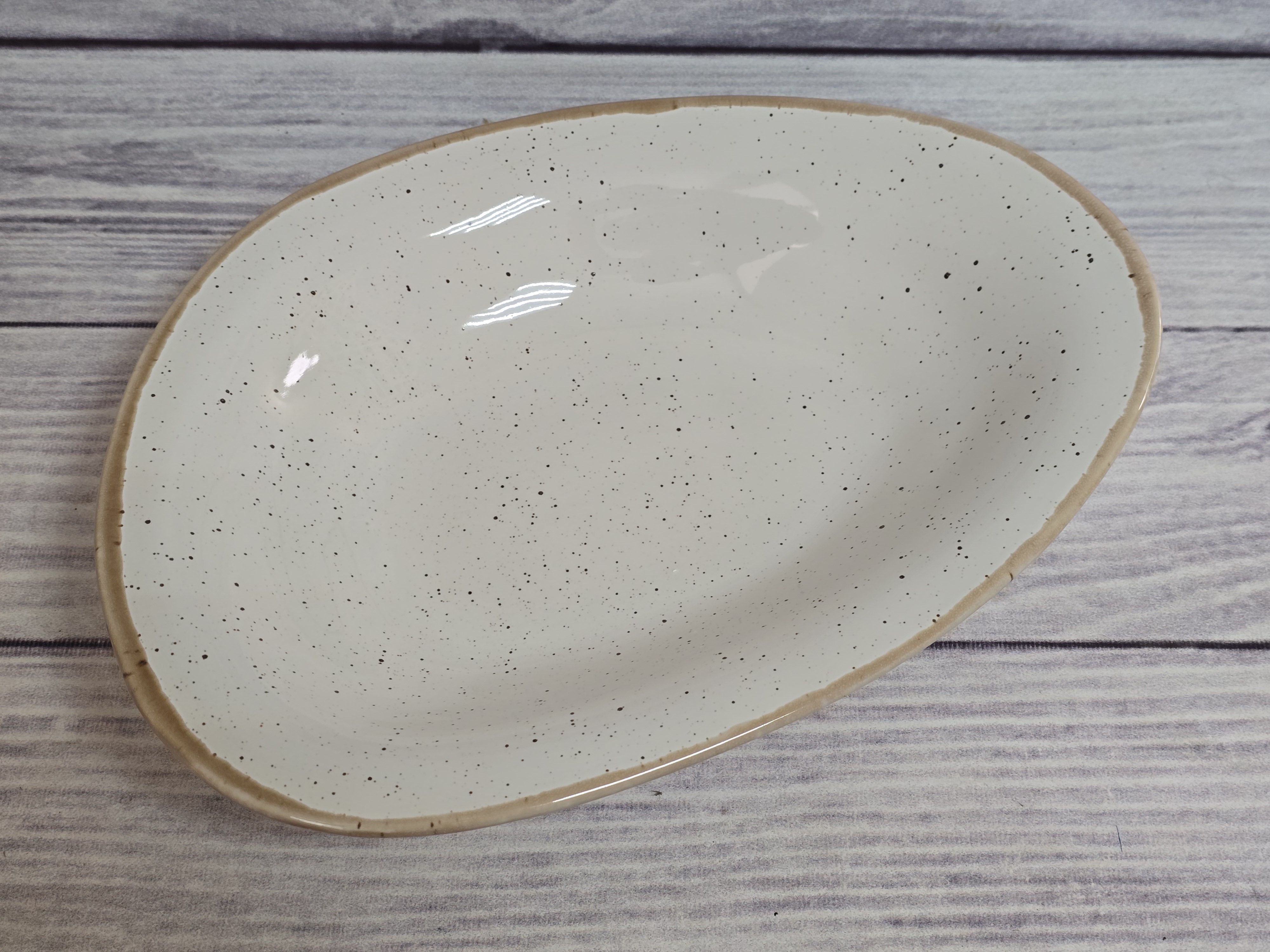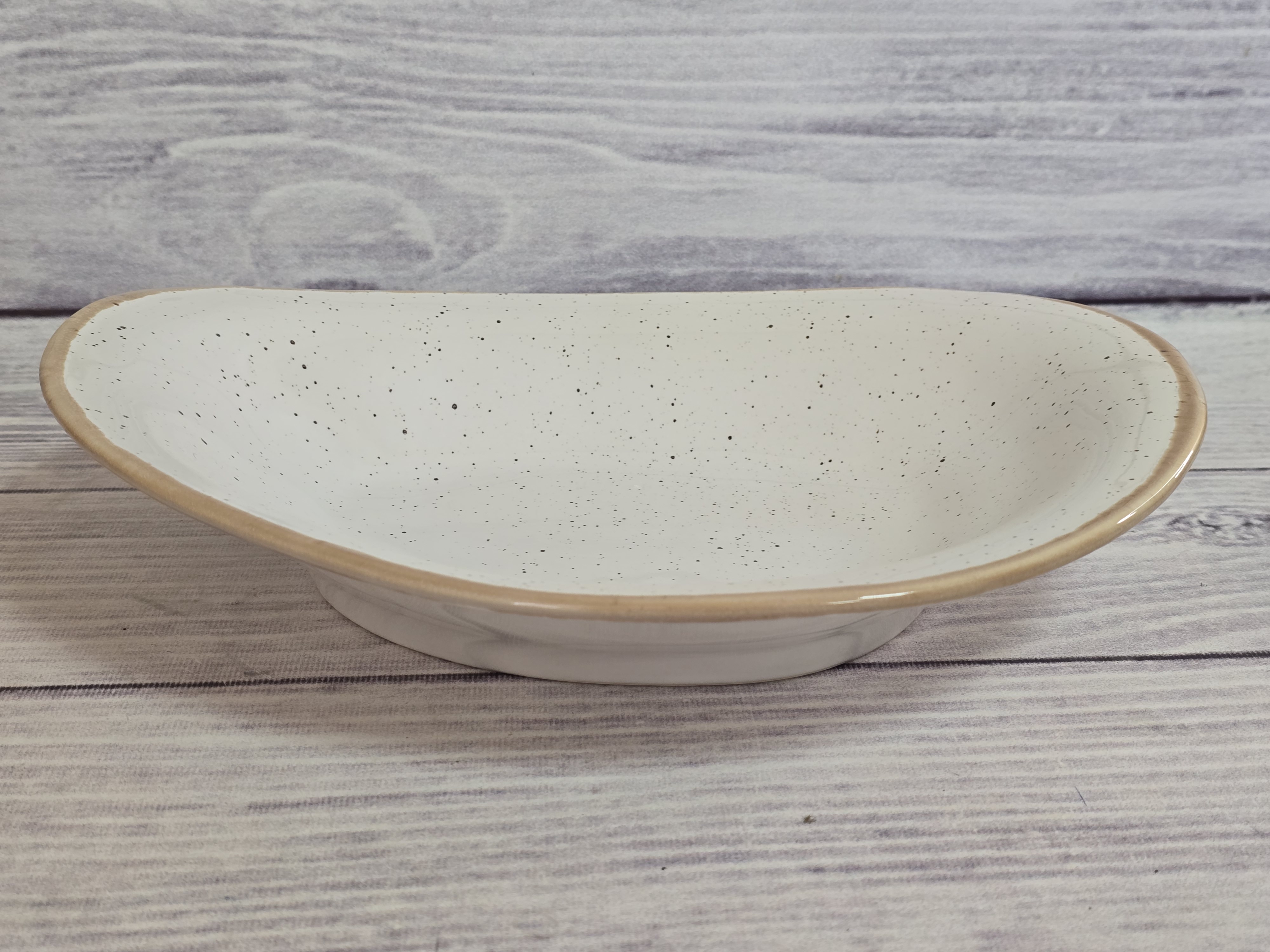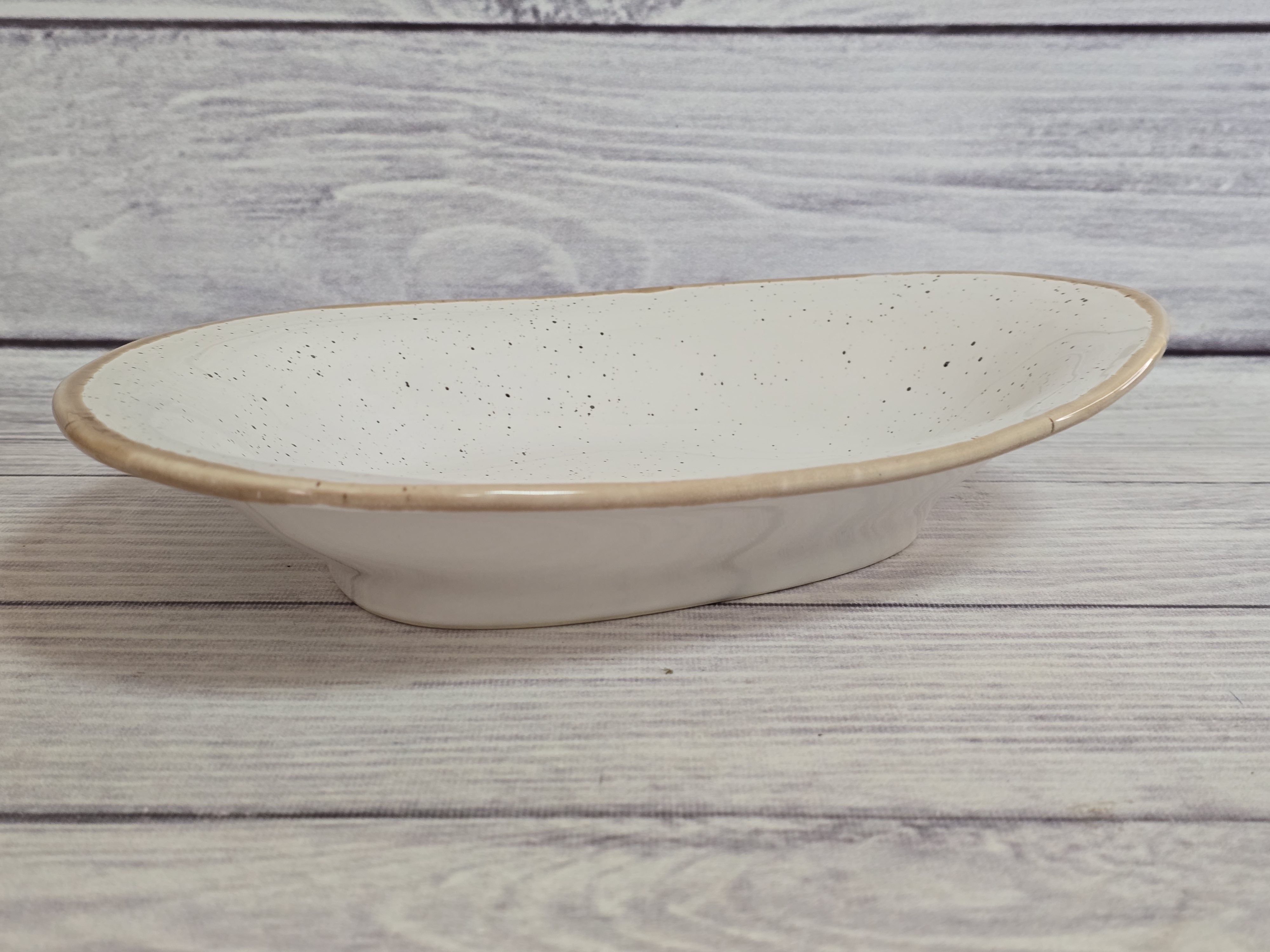 Тарелка неправильной формы. Грациозное и вместительное изделие будет настоящим украшением стола. Отличная идея для необычной подачи салатов или первых блюд. Является дополнением к тарелке barchetta. Тарелка пригодна для использования в микроволновой печи и посудомоечной машине. Глянцевая поверхность.