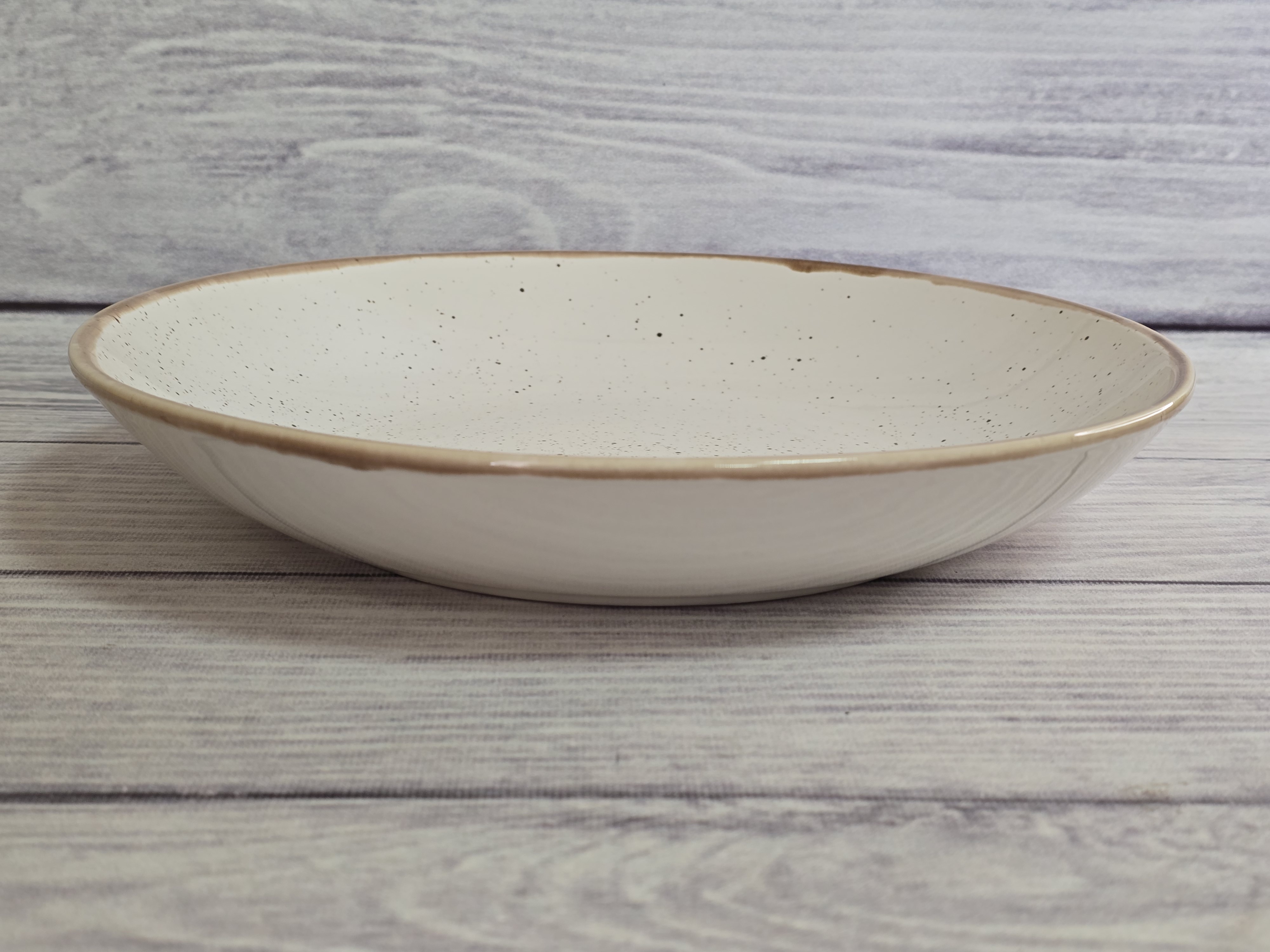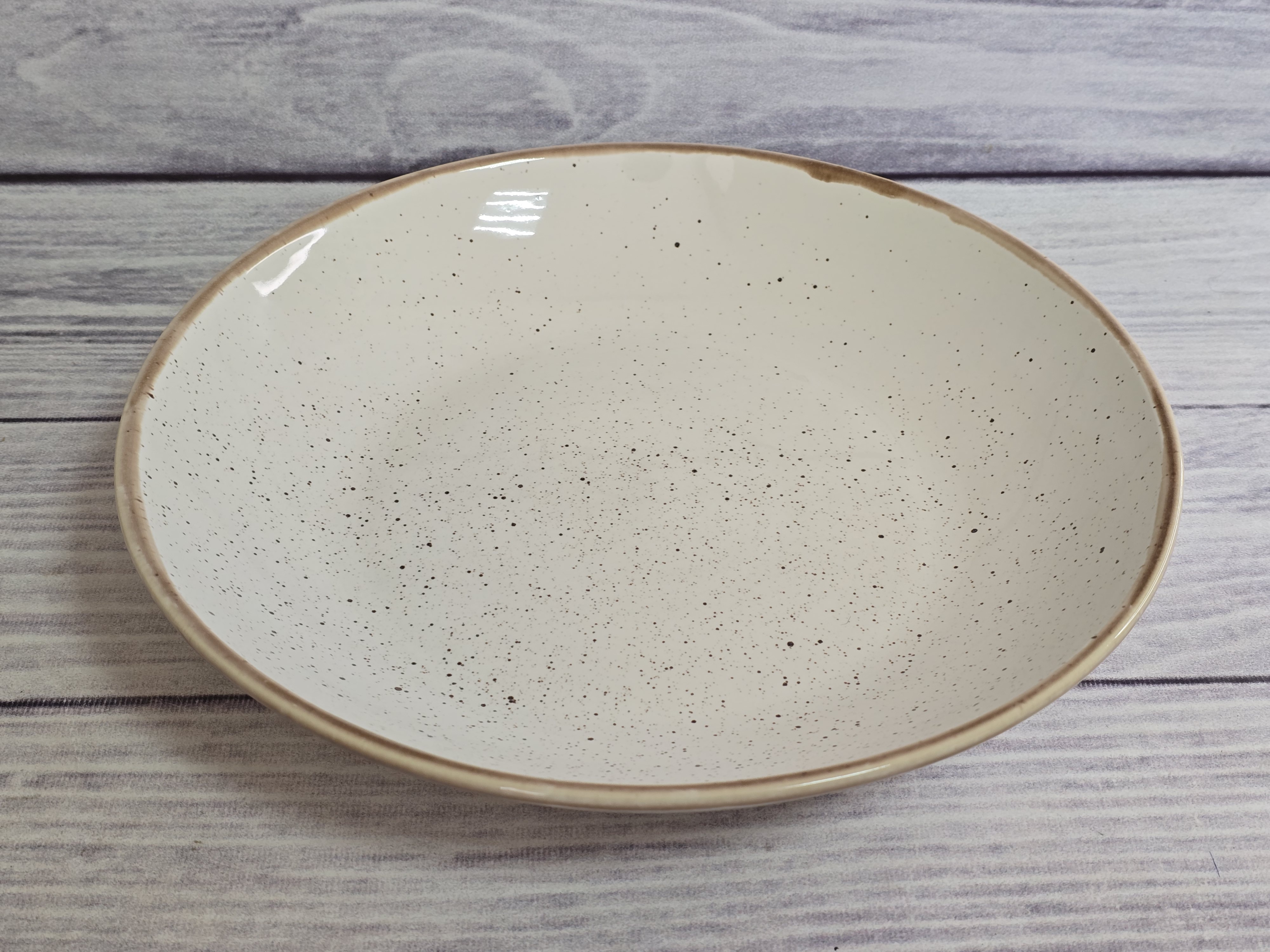 Тарелка большого диаметра с бортиками и широким дном позволяет сделать оригинальную выкладку блюда в соответствии с замыслом шеф-повара. Как говорится – ничего лишнего – поданное на такой тарелке блюдо не потеряется и будет выглядеть изысканно и аппетитно. Глянцевая поверхность.