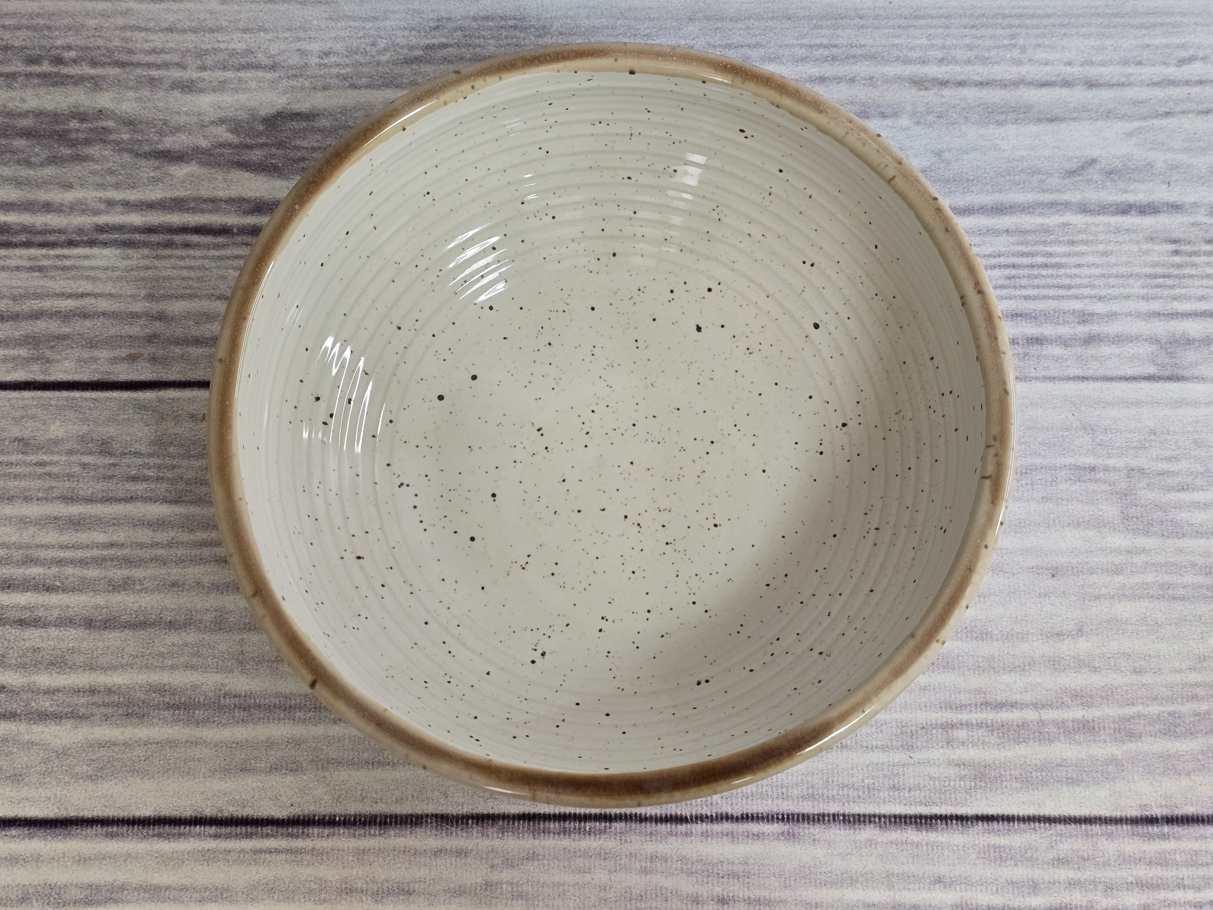 Фарфоровая тарелка, внутри и снаружи имеет рельеф, имитирующий работу гончара. Подача блюд в такой тарелке выглядит оригинально и загадочно. Модный тренд в современной сервировке. Пригодна для использования в посудомоечной машине и микроволновой печи. Глянцевая поверхность.