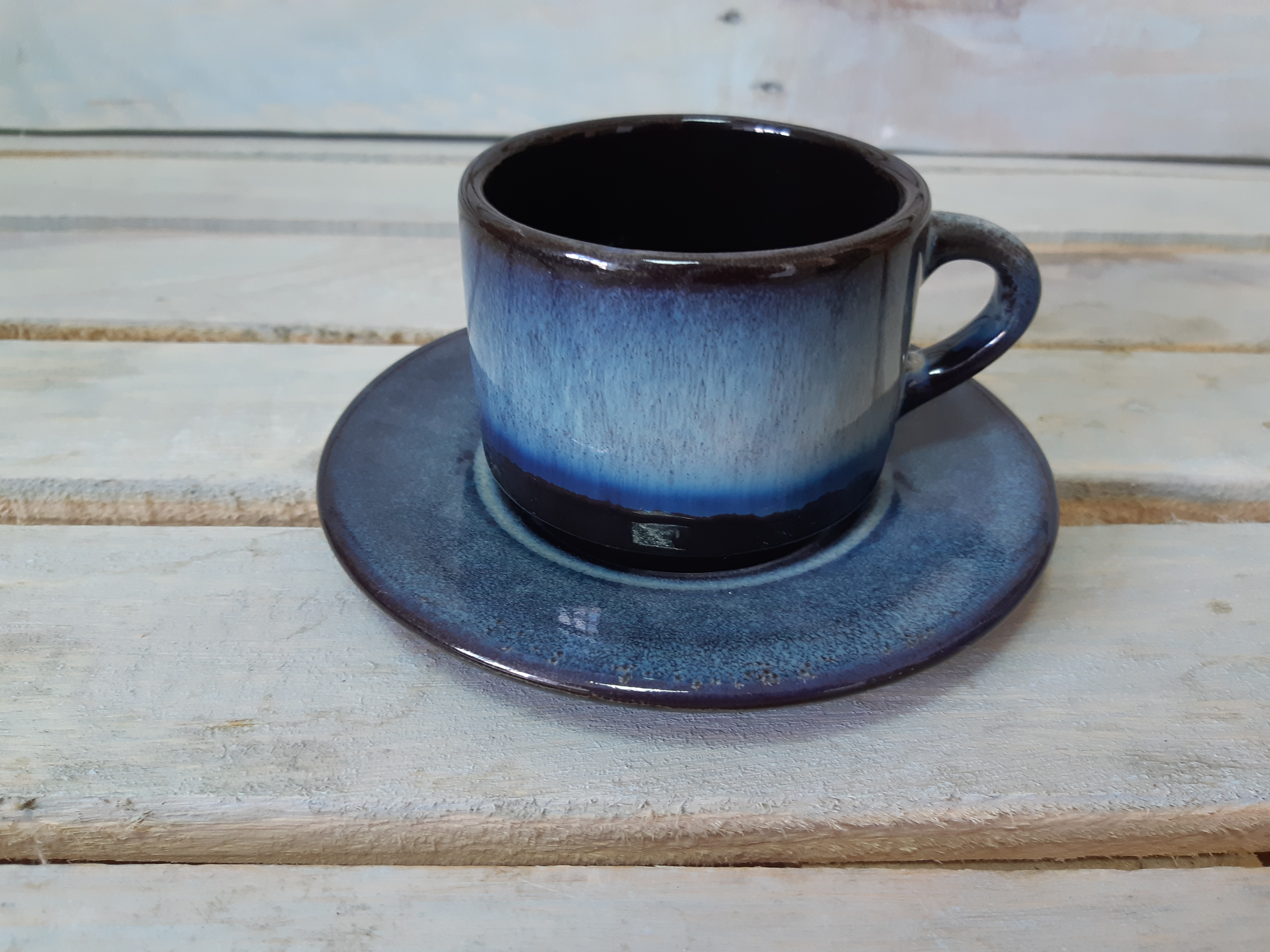 Элегантный дизайн чашки с удобным блюдцем. Идеальна для подачи кофе. Штабелируется и экономит место. Чашки друг на друга можно ставить свыше 10 шт. Пригодна для использования в посудомоечной машине и микроволновой печи. Глянцевая поверхность с бежево-синими хаотичными переливами.